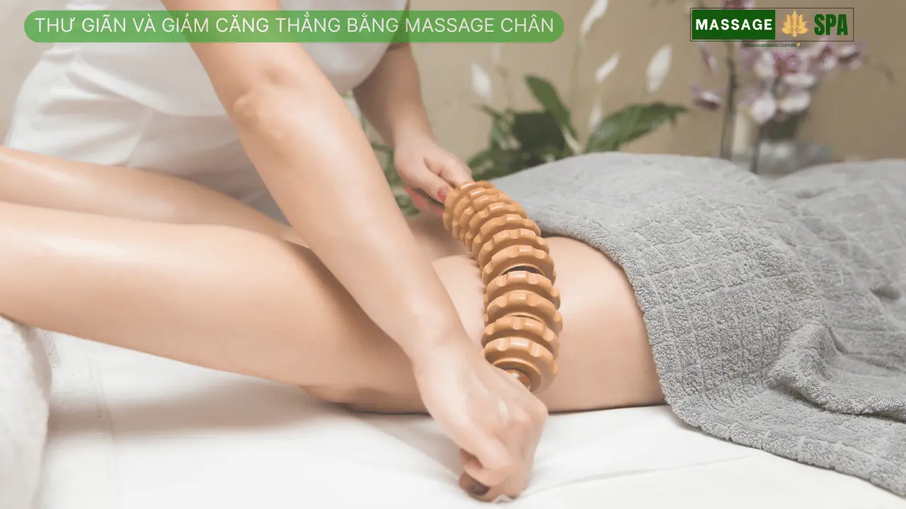 Massage chân không chỉ giúp cải thiện tuần hoàn mà còn có tác dụng rõ rệt trong việc giảm căng thẳng. Khi massage chân bằng gỗ, các huyệt đạo dưới lòng bàn chân được kích thích. Giúp cơ thể thư giãn toàn diện. Những điểm áp lực trên lòng bàn chân được liên kết với các cơ quan trong cơ thể. Việc tác động đúng cách sẽ giúp giảm căng cơ, mệt mỏi. Từ đó làm dịu đi những căng thẳng về mặt thể chất.
